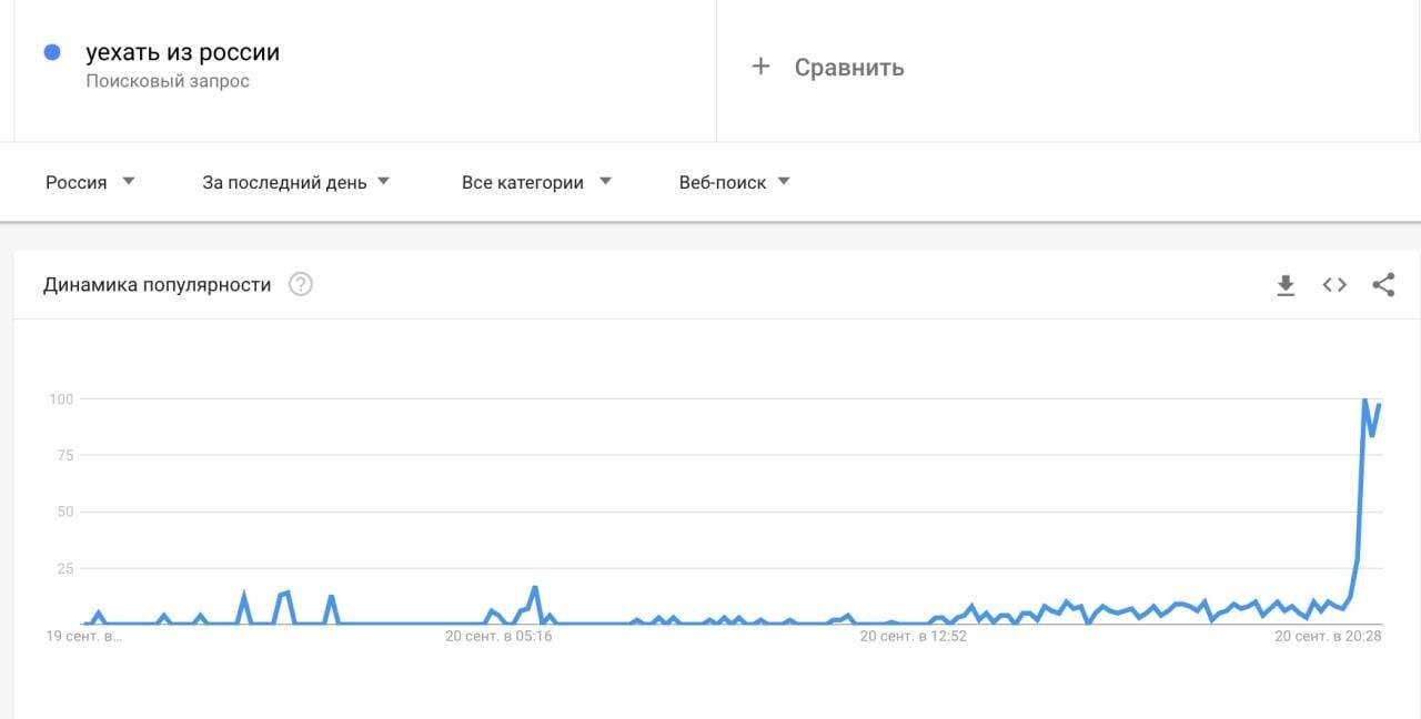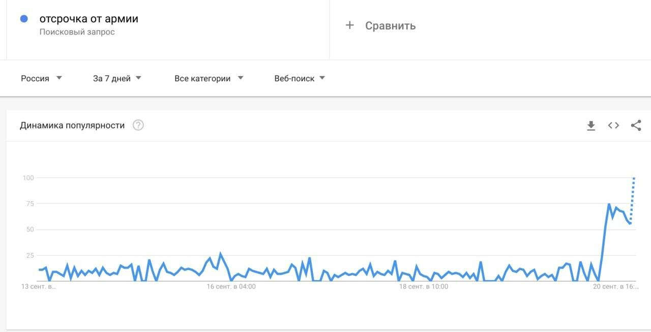 Seferberliğe katılmak istemeyen Ruslar ise ülkeden kaçmak veya askere alınmamak için Google üzerinden yaptıklarını aramalar dikkat çekti. Google Rusya trendinde en çok aranan 3 şey; "Kol nasıl kırılır", "askerliği nasıl ertelerim" ve "Rusya'dan nasıl kaçarım" şeklinde oldu.