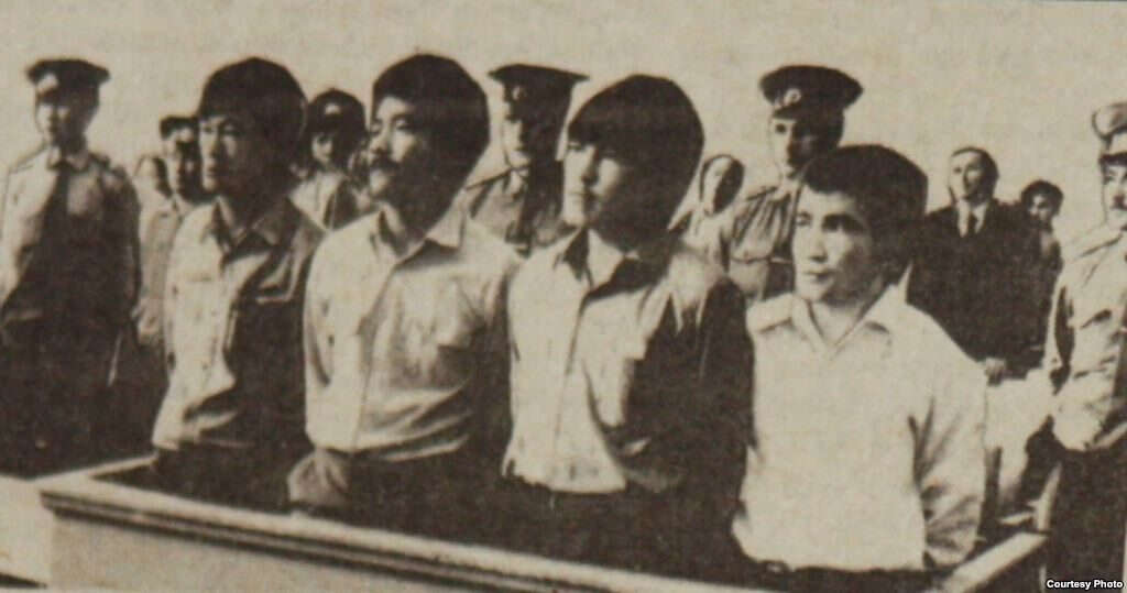 Kayrat Ruskılbekov ve diğer Kazak milliyetçileri Sovyetler tarafından mahkemede yargılanırken