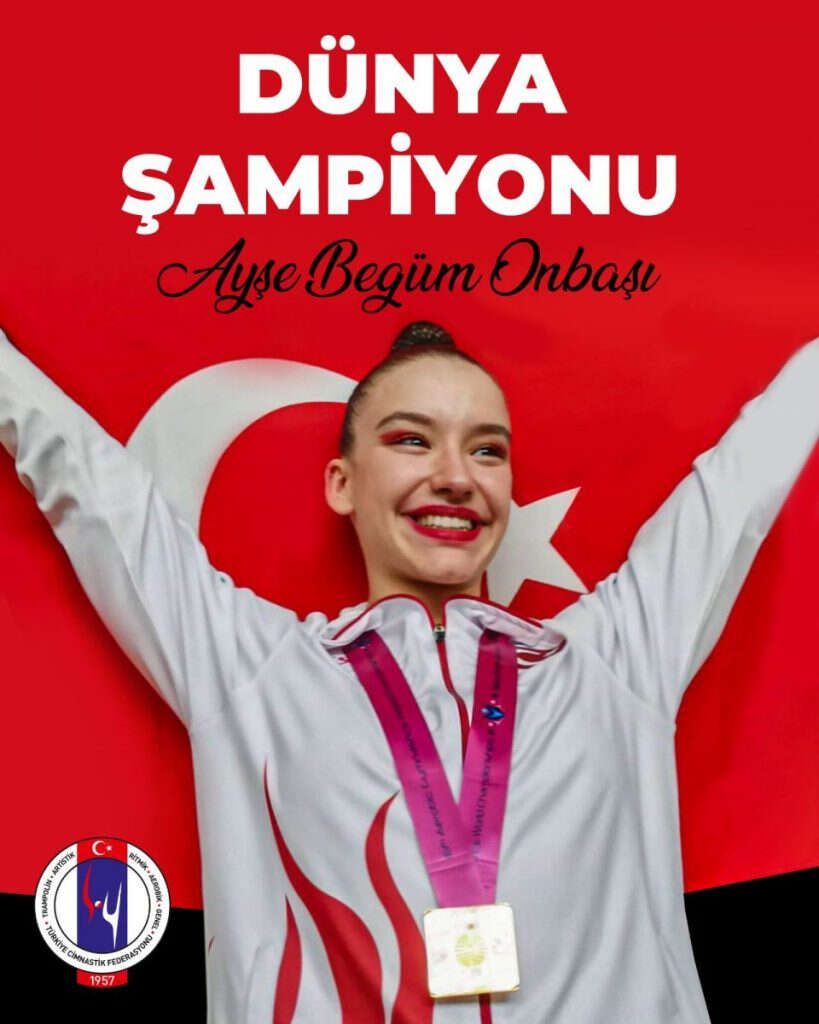 Türkiye Cimnastik Federasyonundan dün yapılan açıklamaya göre, 19 yaşındaki Red Bull sporcusu Ayşe Begüm Onbaşı, Azerbaycan'ın başkenti Bakü'de düzenlenen Aerobik Cimnastik Dünya Şampiyonasında bireysel kadınlar finalinde 21.850 puanla altın madalya kazandı ve dünya şampiyonu oldu.