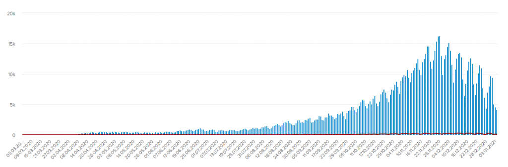 Ukrayna Sağlık Bakanı Maksım Stepanov, yeni tip koronavirüs (Kovid-19) salgınına dair günlük verileri açıkladı. Buna göre, 3 Ocak 2021 tarihinde ülkede 4 bin 158 yeni Kovid-19 vakası tespit edildi.