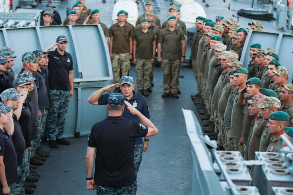 "AZAK DENİZİ VE KARADENİZ'DE GÜVENLİĞİ SAĞLAMAYA DEVAM EDECEĞİZ"Törende konuşan Deniz Kuvvetleri Komutanı, Rusya’nın saldırgan eylemlerine rağmen Ukrayna Deniz Kuvvetlerinin Karadeniz ve Azak Denizi’ndeki güvenliği sağlama görevini yerine getirmeye devam ettiğini belirtirken, "Rusya, Azak Denizi ile Karadeniz’in kendi şahsi iç denizleri olmadığını, bu bölgenin tüm ülkelerin gemileri için açık olduğunu anlamalıdır. İhtiyaç duyulduğu yerde olacağız ve Azak Denizi ile Karadeniz’de güvenlik ve istikrarı sağlama görevlerini yerine getireceğiz." ifadelerini kullandı.