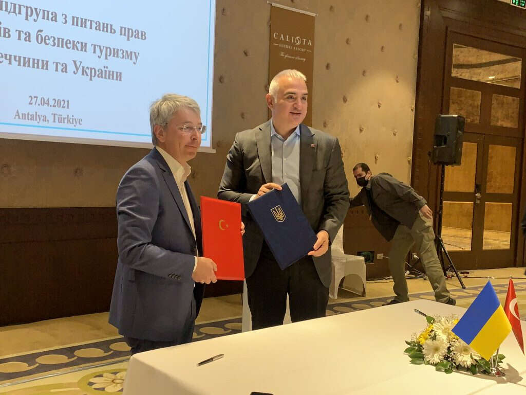 UKRAYNA VE TÜRKİYE, TURİZM İŞBİRLİĞİNE YÖNELİK ORTAK ADIMLAR ATTIUkrayna Ankara Büyükelçisi Andriy Sıbiga'nın bildirdiğine göre, Ersoy ve Tkaçenko, Ukrayna Turist Hakları ve Turizm Güvenliği Alt Çalışma Grubu Toplantısı'na katıldı ve iki ülke arasında turist hakları ve turizm güvenliği alanında işbirliğini daha da güçlendirmek için ortak niyet beyanı imzalandı.