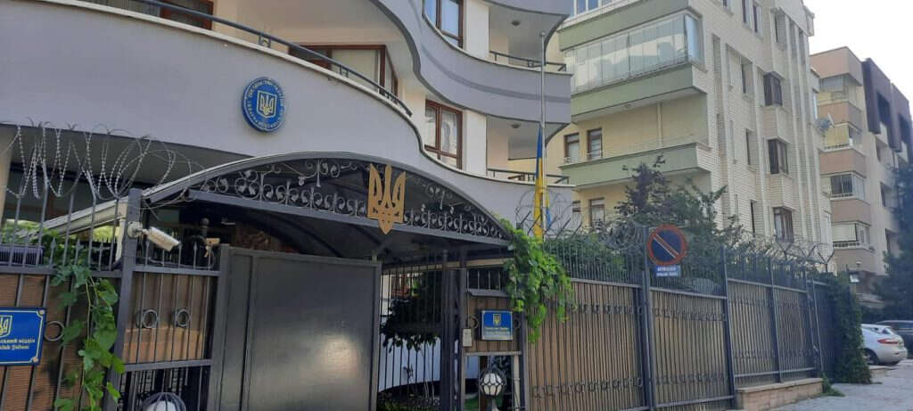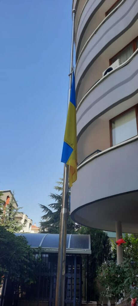 Ukrayna Savunucuları Anma Günü'ne binaen Ukrayna'nın Ankara Büyükelçiliğindeki Ukrayna bayrağı yarıya indirildi.