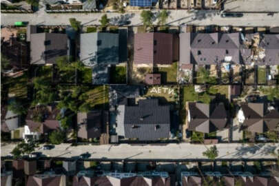 Ukrayna’nın Gostomel kentinde yaşayan bir aile, işgalci Rus güçlerinin hava saldırılarından çocuklarını korumak için evlerinin bahçesine havadan görülecek şekilde “Çocuklar var” yazdı.