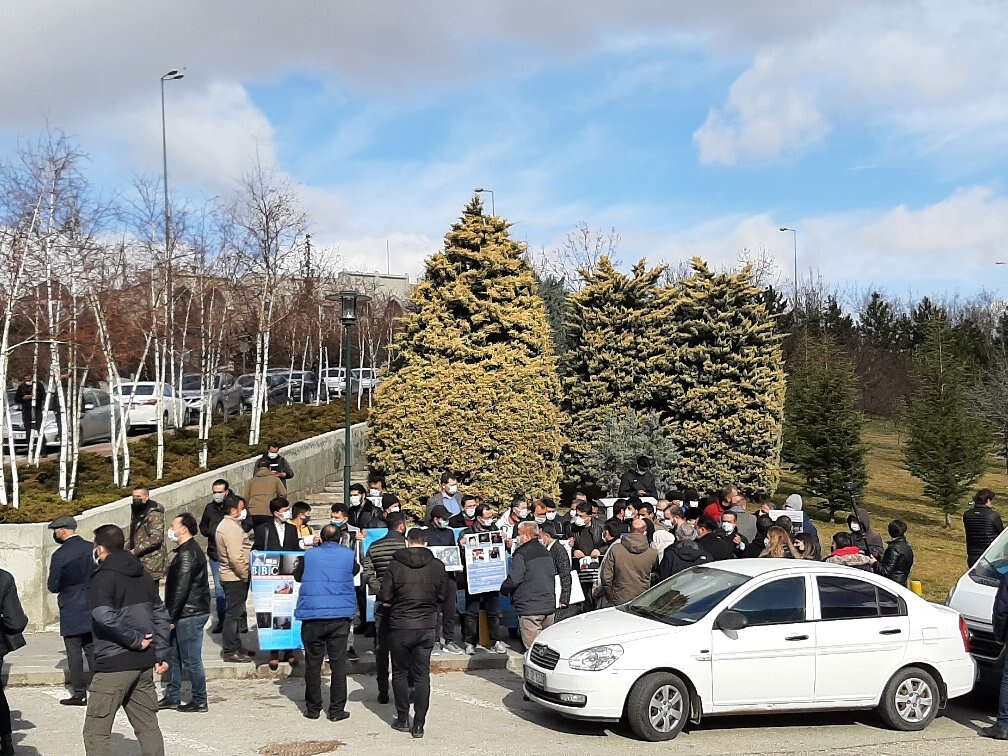 Çin’in sistematik baskı ve asimilasyon politikalarına maruz kalan toplama kampı mağduru Doğu Türkistanlılar, Çin’in Ankara Büyükelçiliği önündeki eylemlerine devam ediyor. Büyükelçilik önünde 3 Şubat 2021 tarihinde başlayan eylemin 7. gününde, izin alınmadığı gerekçesiyle polis tarafından engellendiği öğrenildi.