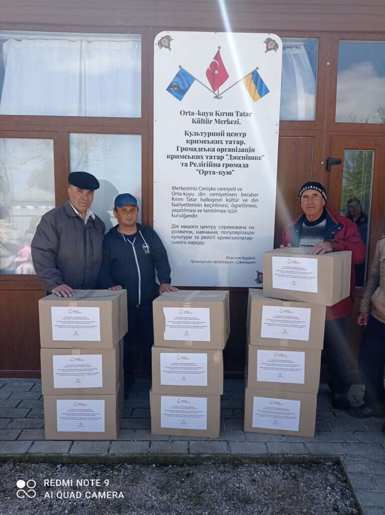 Türkiye Kültür ve Turizm Bakanlığı Yurtdışı Türkler ve Akraba Topluluklar Başkanlığı (YTB) gıda yardımları, Kırım Derneği Genel Merkezi ve Hayat Vakfı (Fond Hayat) aracılığıyla Ukrayna’nın Kırım’a sınır bölgeleri olan "Geniçesk (Cenişke), Çongar, Ortakuyu (Partizan), Yüzkuyu (Frunze), Novoolekseyevka, Sarıbolat, Topraq, Arabat, Çoqraq" Kırım Tatar yerleşim yerlerinde dağıtıldı.