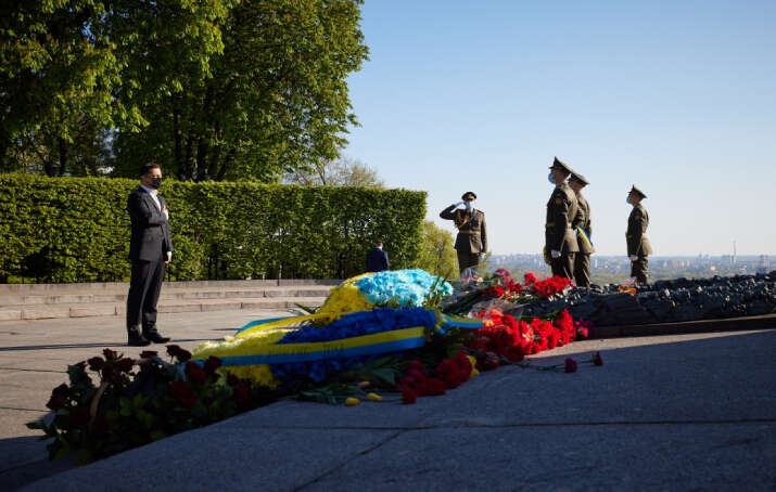 Ukrayna Cumhurbaşkanı Volodımır Zelenskıy, 9 Mayıs Nazizme Karşı Zafer Günü'nde Kıyiv'de 2. Dünya Savaşı'nda öldürülenlerin anısına düzenlenen törene katıldı. Ukrayna Cumhurbaşkanı Zelenskıy, Zafer Günü'ne ilişkin yayımladığı video mesajda, "Atalarımızın kahramanlığı, savunucularımız olan yeni nesil Ukraynalı askerlerimize güç versin. Buna inancımızla, barış ümidiyle, 2.Dünya Savaşı'nda topraklarımızı Nazilerden koruyan ve kurtaran tüm Ukraynalılara bugün teşekkür ediyor ve eğiliyoruz." dedi.