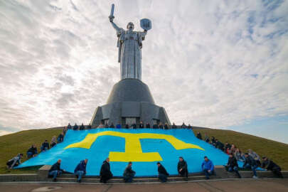 Ukrayna'nın Ankara Büyükelçiliğinde Kırım Tatar bayrağı göndere çekildi