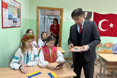 Türkiye'nin Kıyiv Büyükelçisi Yağmur Ahmet Güldere ve Kıyiv Yunus Emre Enstitüsü yetkilileri, Ukrayna'daki Doğu Dilleri Okulu'nu ziyaret etti. Büyükelçilik, öğrencilere Türkçe eğitim seti hediye etti.
