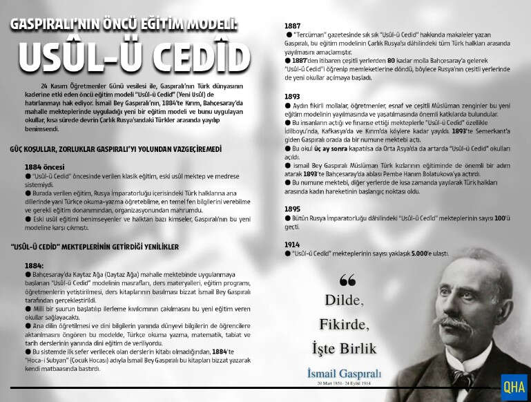 Türk dünyasındaki milli uyanış hareketlerinin öncüsü, “dilde, fikirde ve işte birlik” şiarının yolbaşçısı, büyük Kırım Tatar fikir adamı İsmail Bey Gaspıralı, 20 Mart 1851’de dünyaya geldi. pic.twitter.com/ljYXa3G5Y8