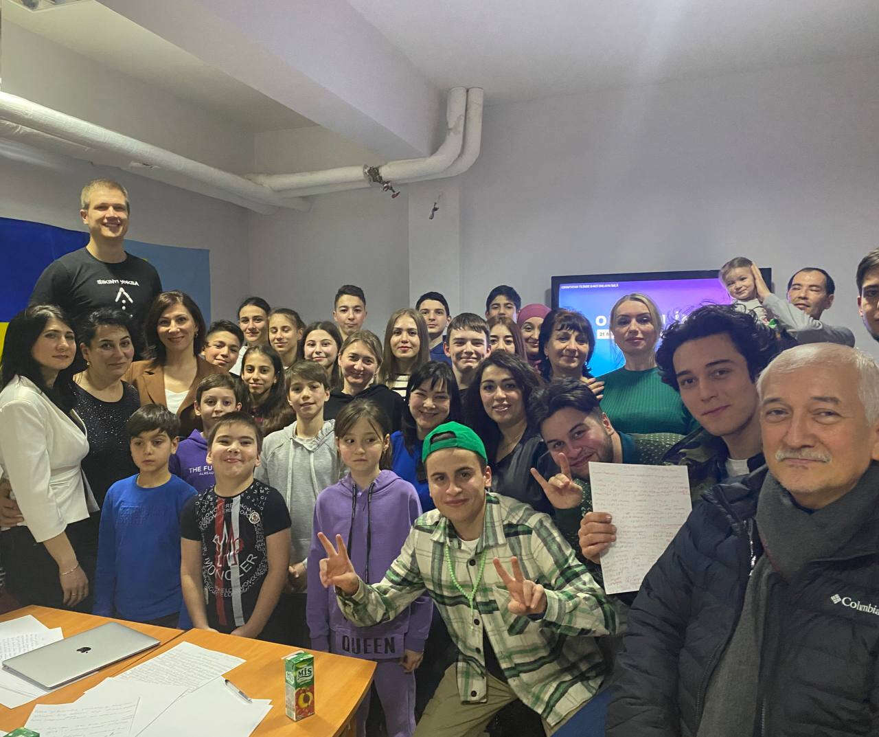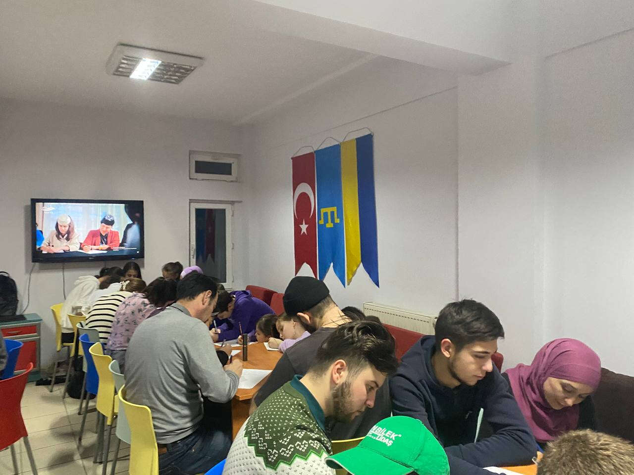 Rus saldırılardan kaçarak Türkiye’ye sığınan Kırım Ailesi çocukları ve aileleri de Kırım Tatarca dikte etkinliğine katıldı.