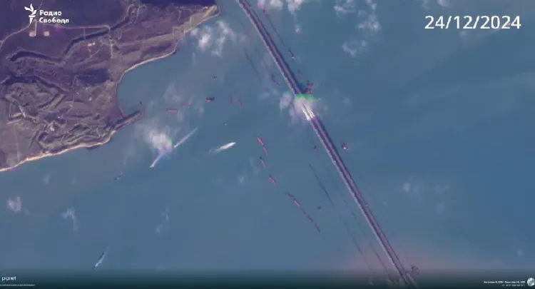 Kırım’ın Kremlin kontrolündeki sözde yönetimi, Rusya’nın Yarımada'yı işgal ettikten sonra Kerç Boğazı üzerinde yasa dışı olarak inşa ettiği ve Ukrayna'nın güneyine asker ile teçhizat sevk etmek için kullandığı Kerç Köprüsü’nü (Kırım Köprüsü) Ukrayna'nın insansız deniz araçlarından (İDA) korumak için farklı önlemler alıyor. Öte yandan işgalcilerin aldığı önlemlerin Karadeniz’in kötü hava şartlarına dayanamadığı aktarıldı.