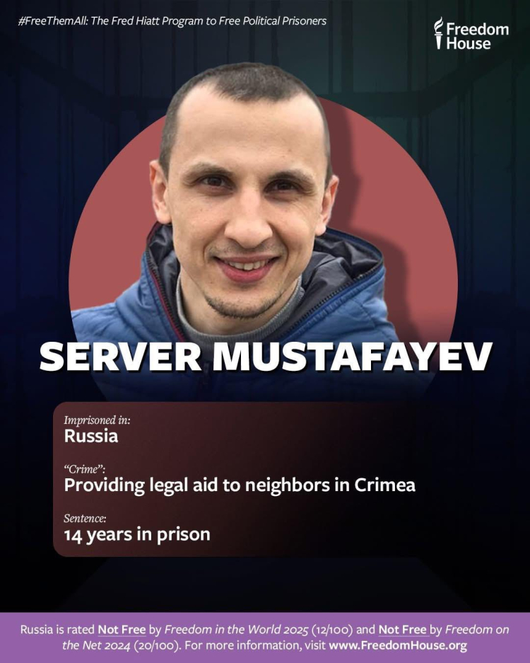 Rus işgali altındaki Kırım’da işgalcilerin Kırım Tatarlarına baskı uygulamak amacıyla kurguladığı sözde "Hizb-ut Tahrir Davası" çerçevesinde 14 yıl hapis cezasına mahkûm edilen Kırım Tatar siyasi tutsak, insan hakları savunucusu Server Mustafayev, insan hakları ve demokrasinin korunmasına yaptığı önemli katkılardan dolayı, ABD merkezli düşünce kuruluşu Freedom House tarafından verilen Alfred Moses Özgürlük Ödülü’ne lâyık görüldü.