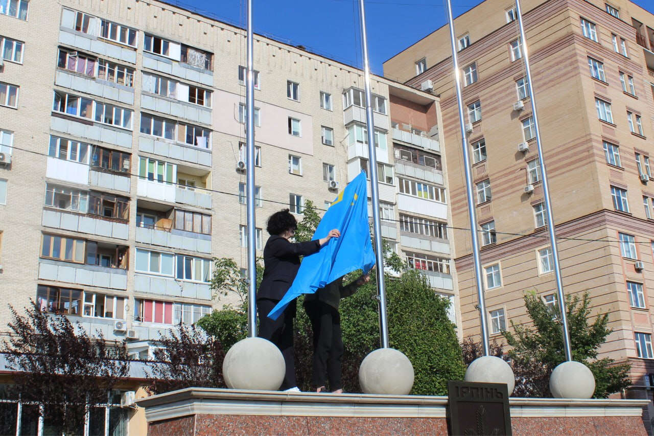Ukrayna’nın Kıyiv bölgesinde bulunan ve işgalci Rus saldırılarında büyük zarar gören İrpin şehrinde, 3. Kırım Platformu Zirvesi arifesinde Kırım Tatar bayrağı göndere çekildi.