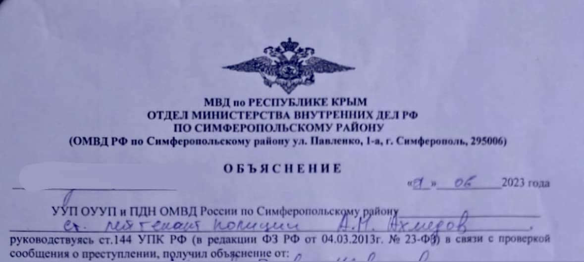 İşgalci Rus kolluk kuvvetleri, Kırım Tatar aktivist Elmaz Kırımlı’nın evinde 1 Haziran 2023 tarihinde arama yaptı. Elmaz Kırımlı, evine gelen işgalci polislerin “sabıka raporu” sorgulaması yapmak ve Kırımlı’nın kayıtlı adresinde yaşayıp yaşamadığını kontrol etmek için geldiklerini söylediğini belirtti.