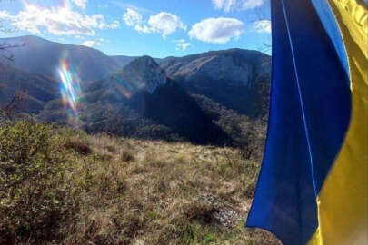 Kırım başta olmak üzere Rus işgali altındaki Ukrayna bölgelerinde faaliyet gösteren "Sarı Kurdele" toplumsal direniş hareketinin aktivistleri, Kırım'da Ukrayna bayrağı açtı.