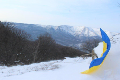 Rus işgaline karşı direnişini sürdüren Sarı Kurdele hareketi aktivistleri Kırım'da Ukrayna bayrağını dalgalandırdı.