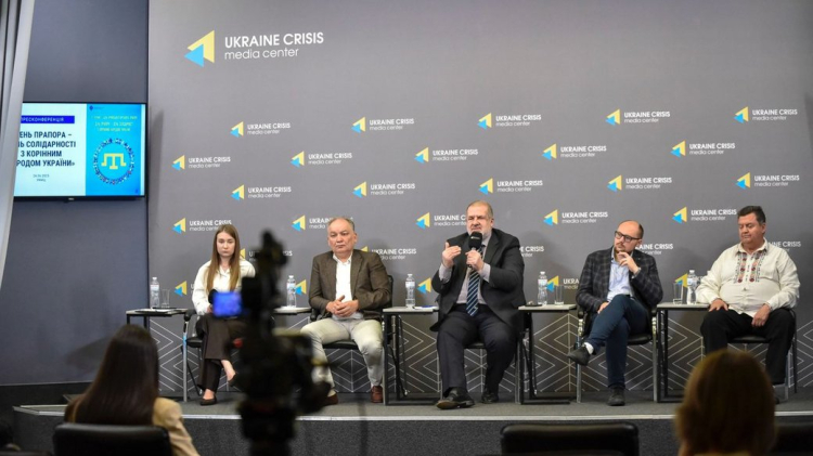 Başkent Kıyiv’de dün Ukrayna Kriz Medya Merkezi’nde düzenlenen basın toplantısında, Kırım Tatar bayrağının sembolik öneminin, özellikle Kırım Tatar halkının anavatanı olan Kırım'ın Rus işgali altında olduğu bu dönemde ve Ukrayna-Rusya Savaşı bağlamında çok büyük olduğuna dikkat çekildi.