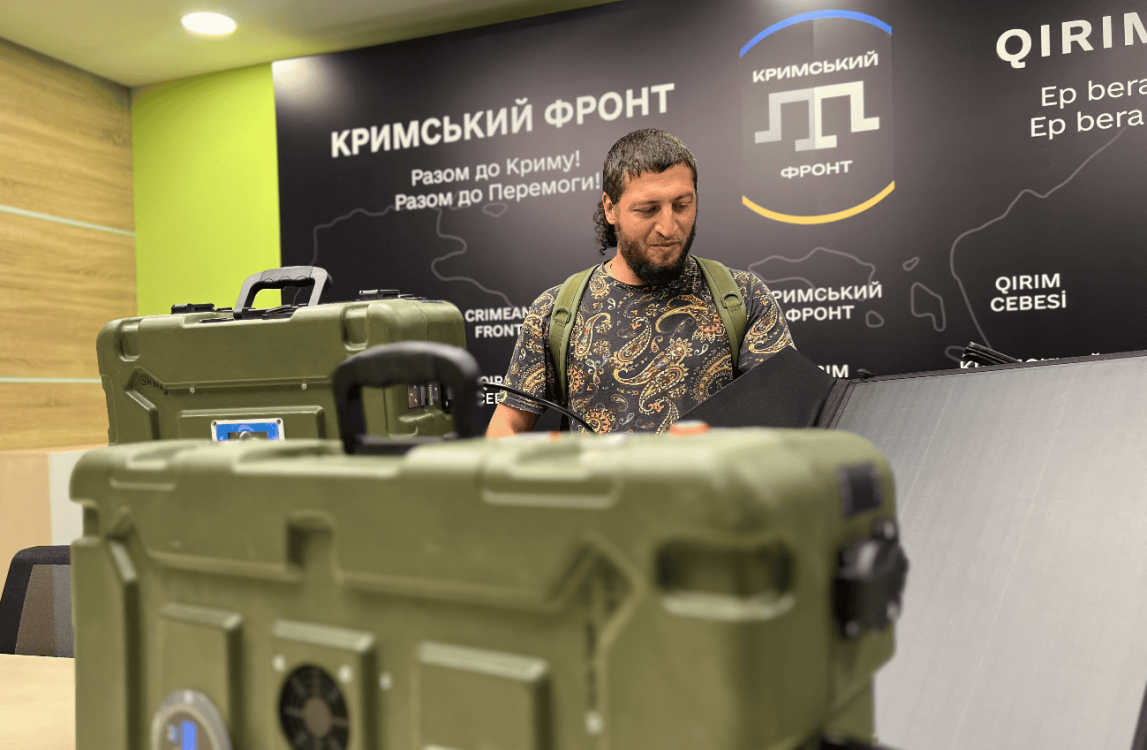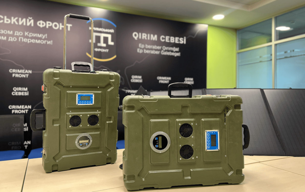 Kırım Tatar Milli Meclisinin (KTMM) Kıyiv ofisinde dün yapılan görüşme sırasında, Lyudına i Pravo Müdürü Borıs Zaharov, yardımı Numan Çelebicihan Taburu adına kabul eden KTMM Başkanı Refat Çubarov’a teslim etti. Borıs Zaharov, söz konusu şarj istasyonlarına cephede çok ihtiyaç duyulduğuna dikkat çekti. Tabletle, akıllı telefon, drone, optik cihazları (termal görüntüleme cihazı) şarj etmek için kullanılan bu şarj istasyonların yeterince güçlü, darbeye ve neme dayanıklı olduğu belirtildi.