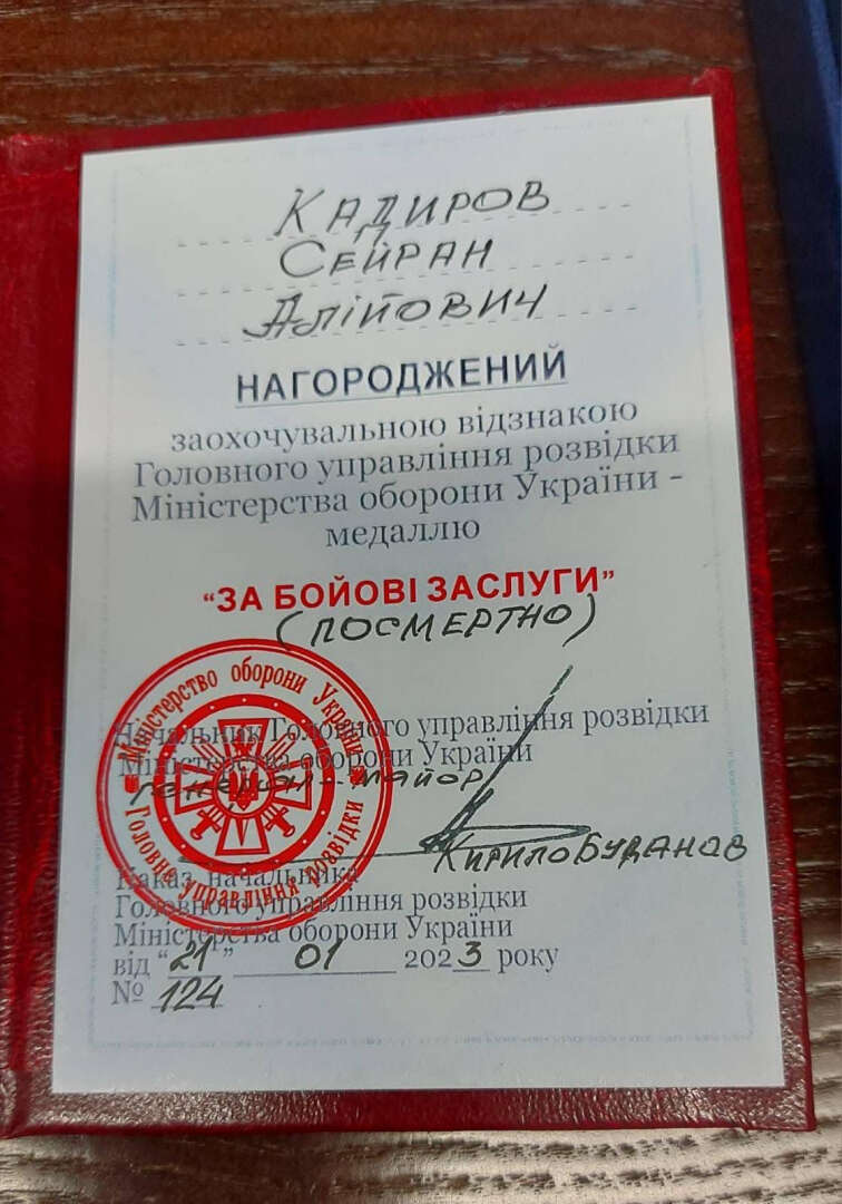 "Ukrayna Silahlı Kuvvetleri Baş İstihbarat Müdürlüğüne bağlı Kırım Özel Birimine bağlı bir asker olan Kırım Tatarı Seyran Kadırov öldürüldü.