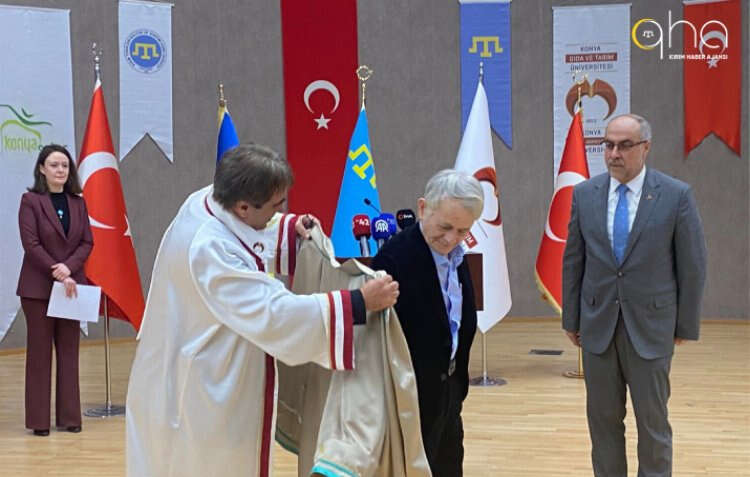 Konya Gıda ve Tarım Üniversitesi, Kırım Tatarlarının milli lideri, Ukrayna Milletvekili Mustafa Abdülcemil Kırımoğlu'na fahri doktora takdim etti.