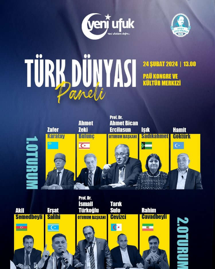 Yeni Ufuk Dergisi tarafından düzenlenecek olan Türk dünyasının önemli isimlerinin konuşmacı olarak katılacağı "Türk Dünyası Paneli", 24 Şubat Cumartesi günü gerçekleşecek. Pamukkale Üniversitesi Kongre ve Kültür Merkezi’nde düzenlenecek olan panel, saat 13.00’de başlayacak.
