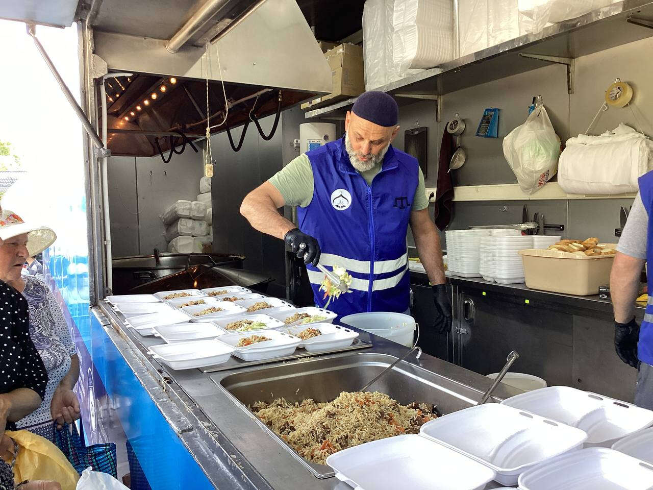 İzüm kentinde 10 Haziran’da yapılan yemek dağıtımı sırasında Kırım Haber Ajansına konuşan Kırım Müftüsü Ayder Rüstemov, “İzüm kenti, 7 Mart ile 10 Eylül 2022 tarihleri arasında Rus işgali altında kaldı. Kentte birçok bina zarar gördü, çok tahribat var. Şimdi ise biz İzüm sakinlerine yemek dağıtıyoruz. Büyük zaferimiz için küçük katkıda bulunuyoruz. Her zaman şunu söylüyorum: ‘Hepimiz zaferimiz için elinden geleni yapmalıdır’. Bu yüzden biz, Kırım Müslümanları Dini İdaresi olarak Kırım Milli Varlık Vakfı ile birlikte Kırım Tatar Milli Meclisi, ASTEM Vakfı desteğiyle bu girişimi başlattık. Bu girişime herkes katılabilir.” dedi.