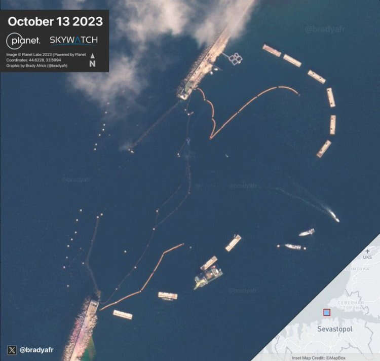 Amerikan Girişimcilik Enstitüsü (American Enterprise Institute) Dış ve Savunma Politikası Araştırma Departmanı Uzmanı Brady Africk, 14 Ekim 2023 tarihinde sosyal medya üzerinden Akyar Limanı’nın uydu görüntülerini paylaşarak, “İşte Rusya'nın, Ukrayna'nın deniz insansız araçlarına karşı koymak için Kırım'daki Akyar Limanı’nın girişine yerleştirdiği bariyerlerin en güncel görüntüsü” açıklamasında bulundu. Uydu görüntüsünün 13 Ekim 2023 tarihinde çekildiği belirtiliyor.