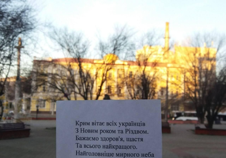 Akmescit, Akyar, Yalta ve Geniçesk'te yazılı kağıtlarla dileklerini paylaşan Sarı Kurdele aktivistleri, "Yeni yıldan dileğimiz basit ve tek: İşgalden kurtulmak. Ukrayna'nın zaferine bir adım daha yaklaşmak için durmuyoruz ve elimizden gelen her şeyi yapmaya devam ediyoruz." ifadelerini kullandı.