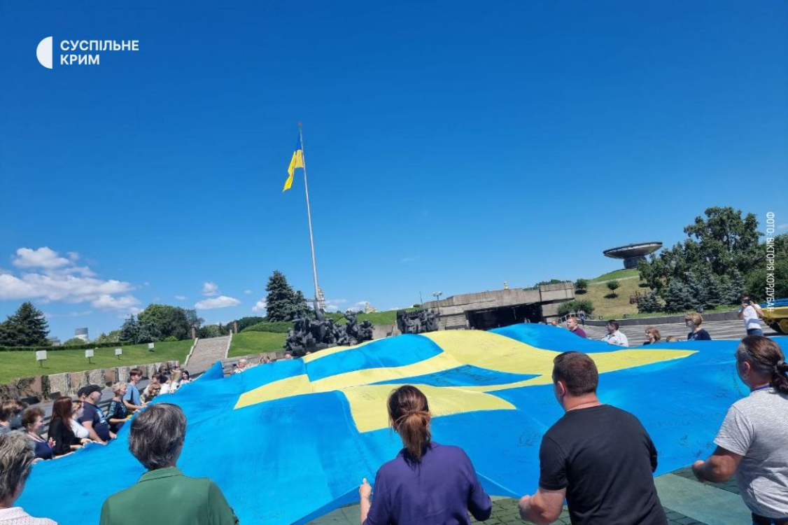 Ukrayna başkenti Kıyıv’de açılan dev Kırım Tatar bayrağı Ukrayna’da açılan en büyük Kırım Tatar bayrağı olarak kayıtlara geçti.