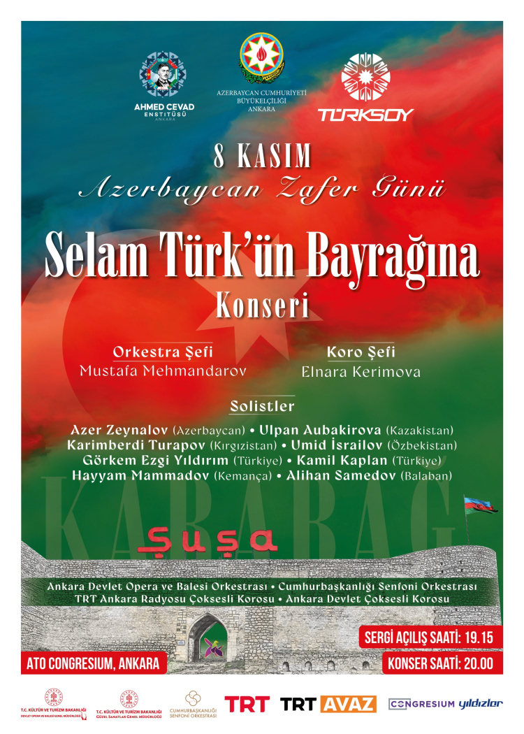 8 Kasım Azerbaycan Zafer Günü'nde "Selam Türk'ün Bayrağına" adlı konser, Türkiye'nin başkenti Ankara'da yer alan ATO Congresium'da tertip edilecek.