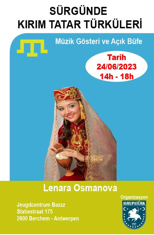 Avrupa Türk Derneği, Belçika'da yaşayan Kırım Tatarları için 24 Haziran 2023'te "Sürgünde Kırım Tatar Türküleri" isimli müzik gösterisi düzenleyecek. Kırım Tatar sanatçı Lenara Osmanova sahne alacak.