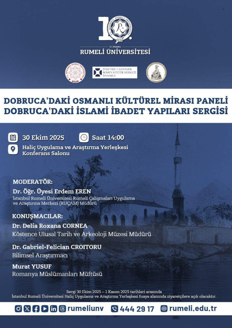 İstanbul Rumeli Üniversitesi, Dimitrie Cantemir Romen Kültür Merkezi ve Köstence Ulusal Tarih ve Arkeoloji Müzesi iş birliğiyle düzenlenen “Dobruca’daki Osmanlı Kültürel Mirası" paneli 30 Ekim 2025’te İstanbul’da düzenlenecek.