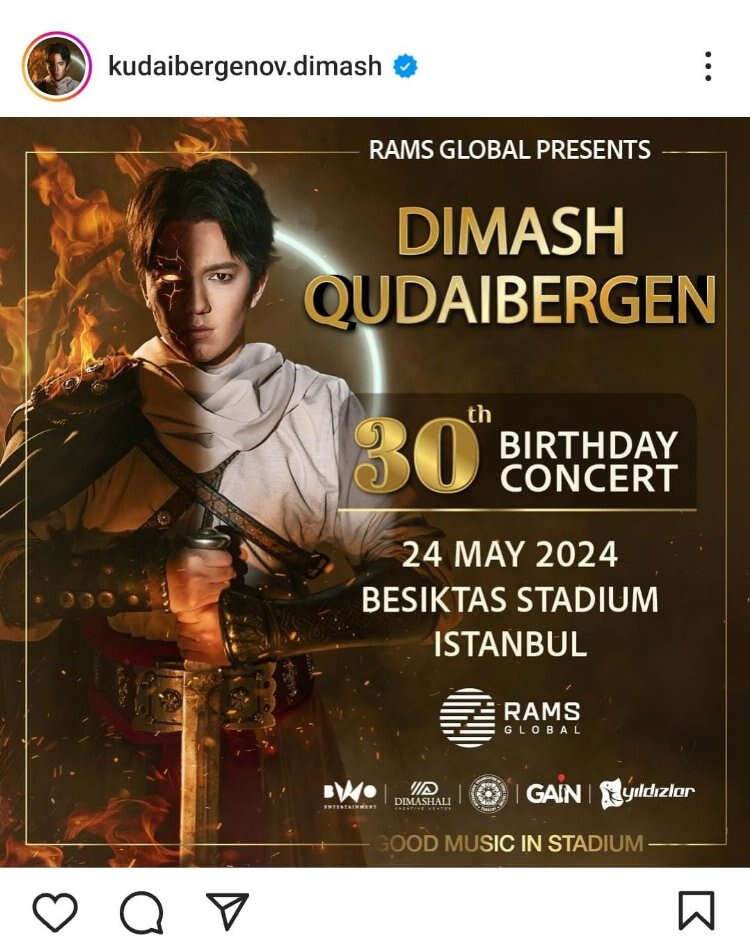 Kazak sanatçı Dimaş Kudaybergen, 24 Mayıs 2024 tarihinde İstanbul'da Beşiktaş Park stadyumunda solo konser vereceğini duyurdu.
