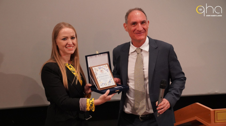 Dernek Başkanı Ambarkütükoğlu, açılış konuşmalarından ardından ABD Büyükelçiliği Maslahatgüzarı Goldman ve Ukrayna'nın Ankara Büyükelçisi Bodnar'a plaket takdim etti.