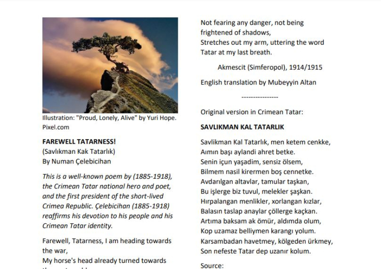 "Kırım ve Kırım Tatarları" başlığıyla İngilizceye çevrilen derleme şiirler e-kitapçıkta yayımlandı