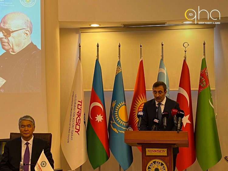 Programa katılım sağlayan Cumhurbaşkanı Yardımcısı Yılmaz, "Doğumunun 100. Yılında Sanatçı Kimliği ile Kuzey Kıbrıs Türk Cumhuriyeti Kurucu Cumhurbaşkanı Rauf R. Denktaş" konulu etkinlikte olmaktan mutluluk duyduğunu söyledi. Yılmaz, konuşmasının başında onurlu mücadeleye ömrünü adayan Denktaş'ı yad etti. Yılmaz, "TÜRKSOY'un ev sahipliğinde merhum Denktaş'ı bugün yalnızca lider kişiliği ve devlet adamlığıyla değil aynı zamanda sanatçı yanıyla anmış olacağız. Türk dünyasının ayrılmaz bir parçası olan Kıbrıs Türkü on yıllarca Rum mezalimine korkuuszuca direnmiş, can vermiş, kan vermiş ve hürriyetinden vazgeçmemiştir. EOKA zulmüne rağmen 1571'den beri yurdu bildiği toprağı bırakmamış egemenliğinden asla taviz vermemiştir. Kıbrıs Türkü, Ada'nın Yunanistan'a bağlanması anlamına gelen Rumların ENOSİS hayallerine karşı azmin zaferini göstermişti. Denktaş, Kıbrıs Türkü'nün varoluş mücadelesine öderlik etmiş ve tüm Türk dünyası tarihinin sembol isimlerinden biri olmuştur. KKTC başta olmak üzere Denktaş'ın eserleri nefes almaya devam etmektedir. Sanatçı kimliği çerçevesinde bana göre Denktaş'ın en büyük sanat eseri Kuzey Kıbrıs Türk Cumhuriyeti'dir" ifadeleri alkış topladı.