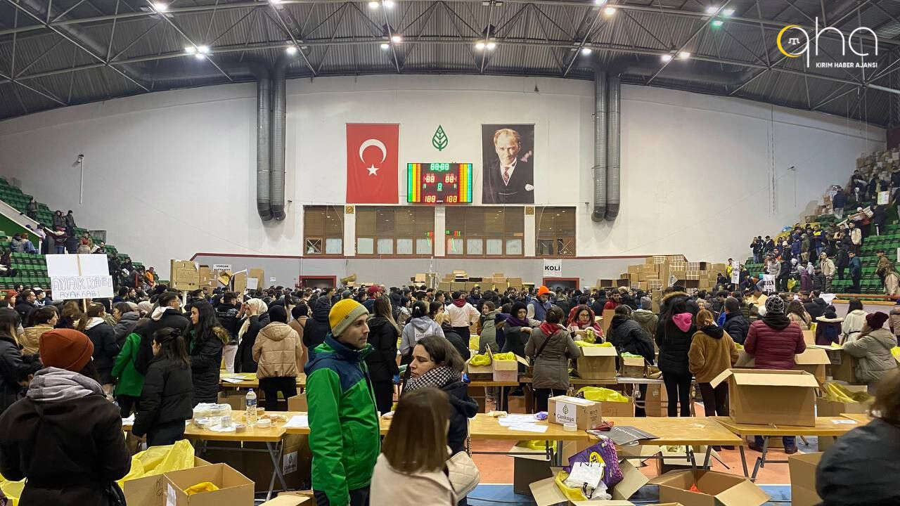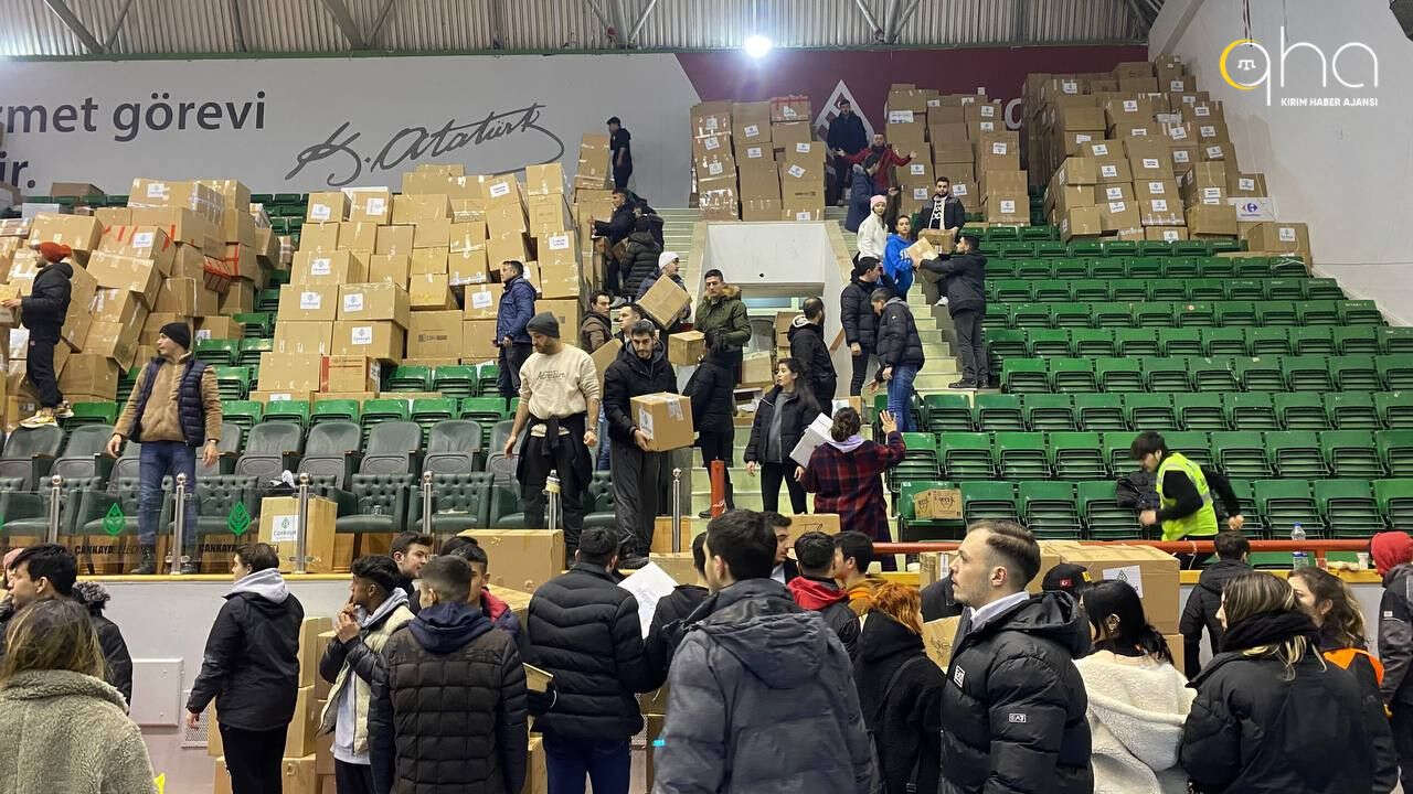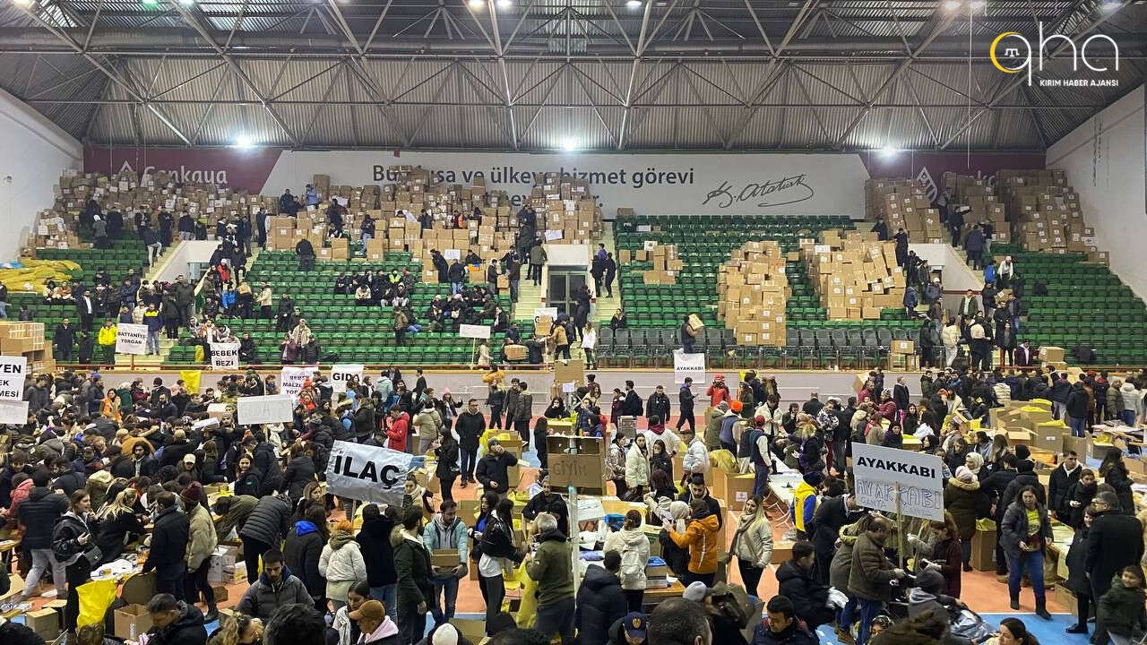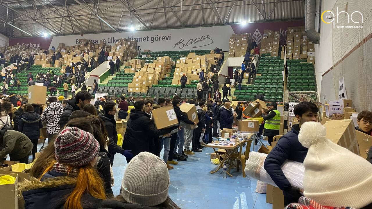 Başkent Ankara'da vatandaşlar, Kahramanmaraş merkezli 11 ili etkileyen depremlerin ardından bölgeye insani yardım göndermek için seferber oldu. Yardımların toplandığı adreslerden biri de Çankaya Belediyesi Ahmet Taner Kışlalı Spor Salonu oldu. Spor salonuna akın eden başkentliler, el ele organize bir şekilde yardımların kolilenmesine ve tırlara taşınmasına yardım ediyor.