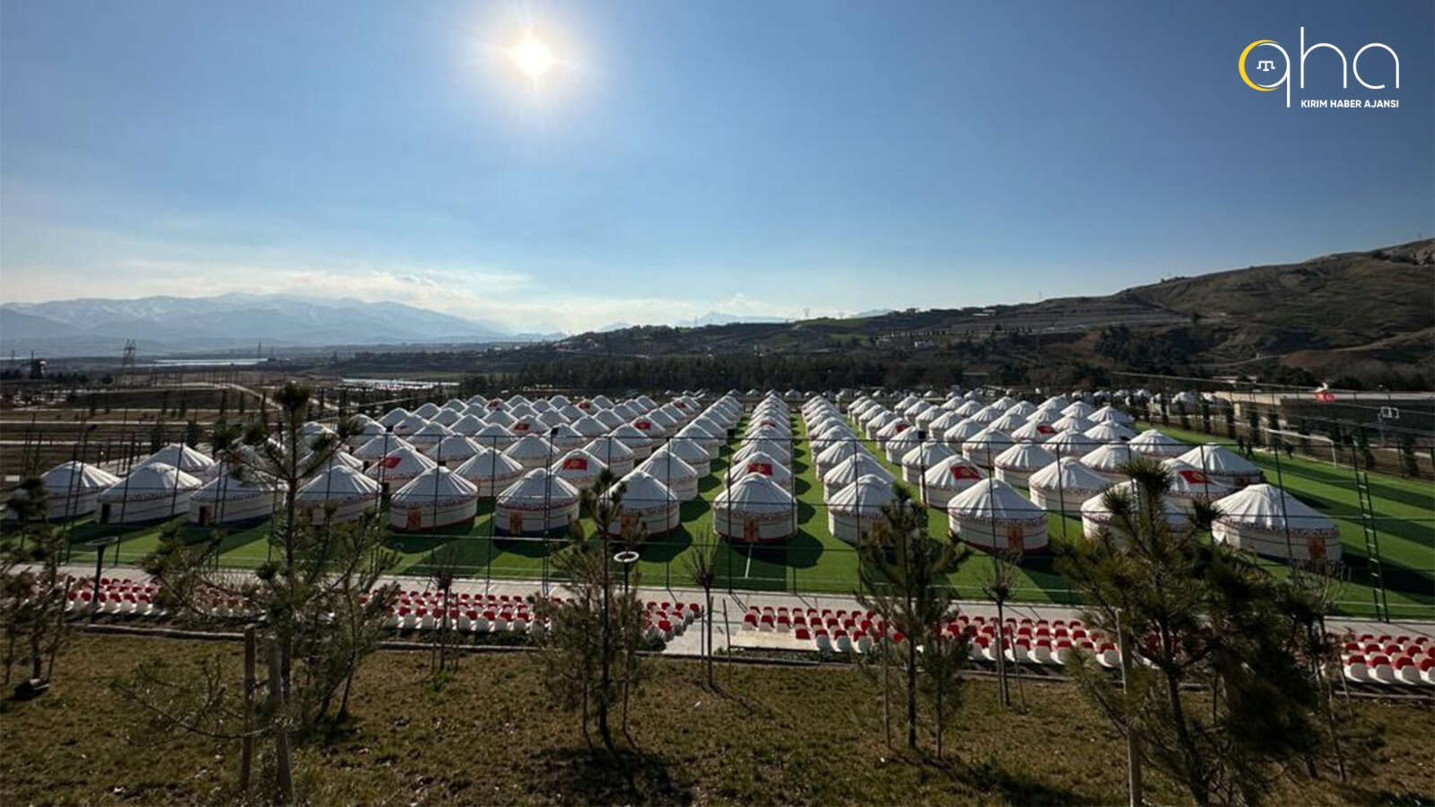 Kırgızistan’dan gelen 78 adet çadır Kahramanmaraş’ta bulunan geniş ölçekli bir halı sahaya kuruldu. Öte yandan Kazakistan’dan gelen çadırlar da oba şeklinde bir başka kurulu. Aynı zamanda koşu yolu şeklinde bir bölüm var. Kazakistan’dan gelen çadırlar orada yer alıyor. Otağlar pek çok vatandaşımızın faydalanabilmesi için geniş geniş hazırlanmış.
