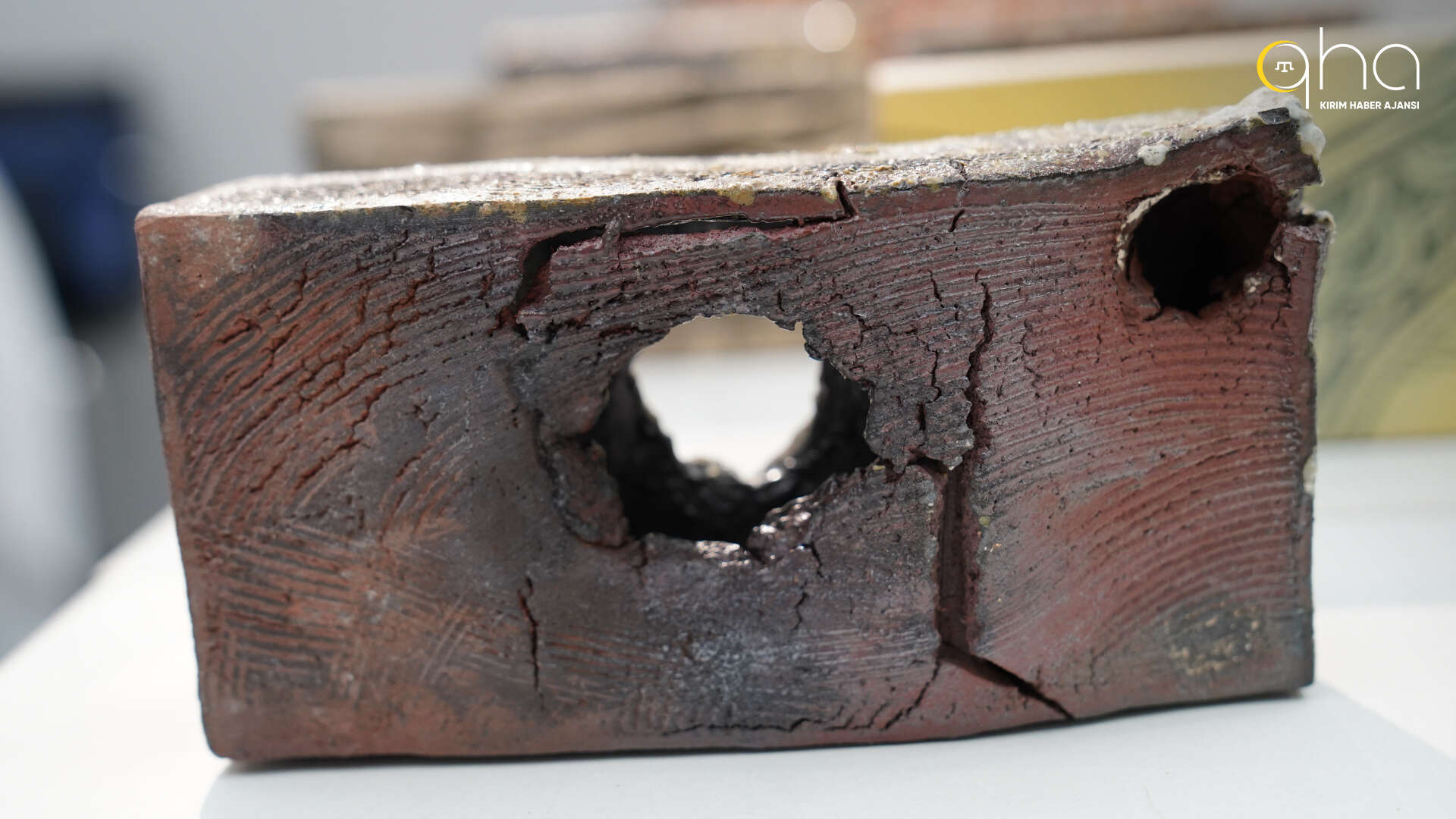 "Tuğlalardan birinde büyük bir delik var bu da Ukrayna’daki hayatın ortasına savaşın bir delik açtığını, yaşamaya devam etmenin zor olduğunu ve deliğin hiçbir zaman öylesine kapanmayacağını sembolize ediyor. Diğer tuğladan, dünyanın farklı dillerinde barış yazıyor. Bu da Ukrayna’nın en çok istediği şeyi ifade ediyor. Tuğlalar arasında sıkışmış bir kadın silüeti var. O da aslında savaşın insanları ne kadar kısıtladığını eskisi gibi devam etmelerine izin vermediğini gösteriyor. Yine Ukraynalıların hayatını sembolize ediyor. Demirden tuğla şeklinde eser var o da şu anda Ukrayna’da çatışmalar devam ettiği için askeri teçhizatı sembolize ediyor. Ve demirin hayatımıza nasıl, ne şekilde bombalarla girdiğini gösteriyor"