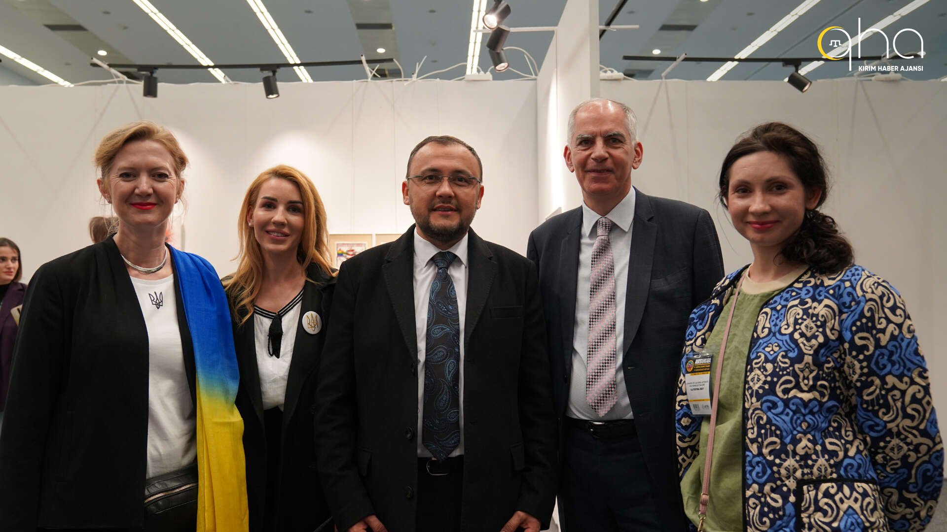 Ukraynalı sanatçılar tablo, fotoğraf ve ilginç sanat eserleriyle fuarda yerini aldı. Katılımcılar, savaşın ve sanatın izlerini yansıtan Ukrayna standına yoğun ilgi gösterdi.