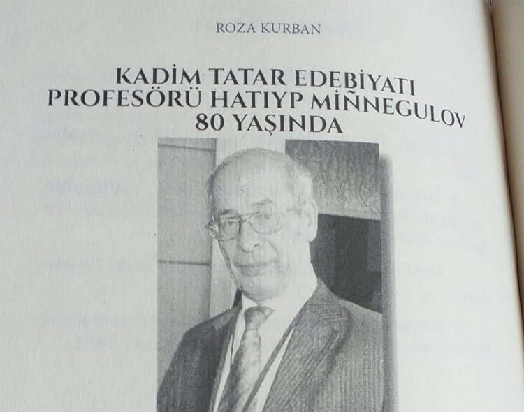 Üniversitemizde hocam olan Hatıyp (Hatip) Minnegulov’u da doğumunun 80. yılında Kadim Tatar Edebiyatı Profesörü başlığıyla yazdım. Hayatta olan insanları yazmıyorum kendime ilke edindim ama bazı istisnalar var. Hem hayatı hem eserleri hem de hocam olması dolayısıyla ona eserimde yer verdim. Buralara çok zorluk çekerek gelmiş. Yine de sonuca ulaşmış, kadim edebiyatımızı araştıran kişiliğiyle örnek bir insan.”