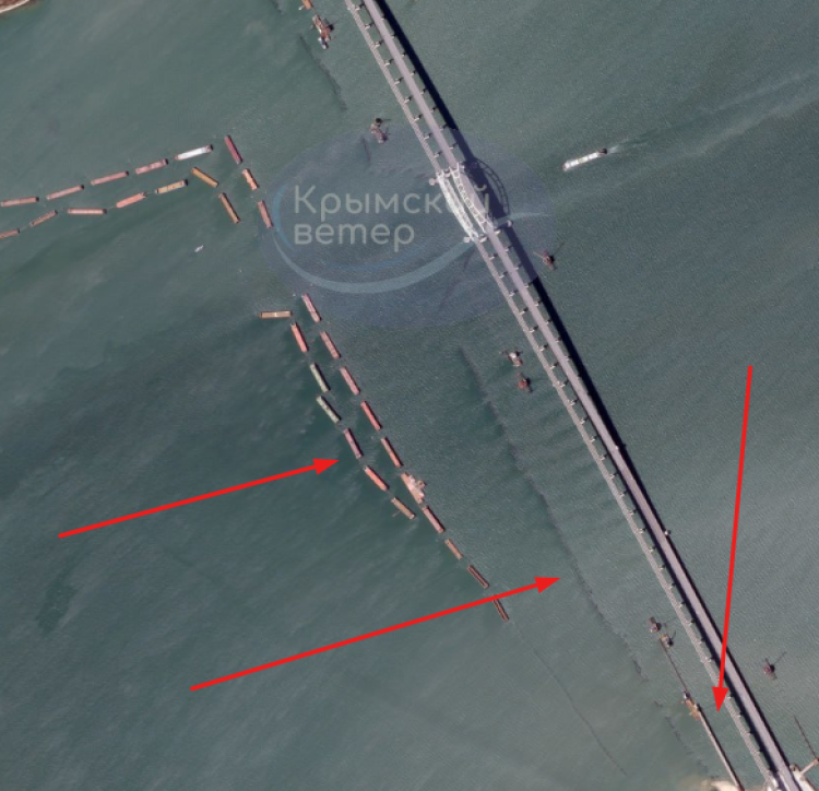 Ukrayna Savunma Bakanlığı İstihbarat Başmüdürü Kırılo (Kyrylo) Budanov'un Kerç Köprüsü'nün imha edilmesi gerektiği yönündeki açıklamalarının ardından, işgalci Rusya köprü boyunca savunma yapıları inşa etmeye başladı. Bu yapıların, su altı ve su üstü insansız deniz araçlarıyla (İDA) yapılacak olası saldırılara karşı koruma sağlaması amaçlanıyor.
