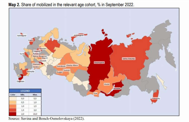 Ortaya çıkan haritada seferber edilen nüfusun Rus halkının yoğun yaşadığı yerlerden ziyade, Rusya'da yer alan ve Türklerin yoğunlukta ikamet ettiği bölgelerden geldiği görüldü. Solanko, Rusya'daki ekonomik krizin büyük bir çıkmaz yarattığını ifade ederken, "Bir bakıma asker sözleşmesi ve imza ikramiyeleri fakir bir vatandaşa daha cazip geliyor. Ancak bunlar aynı zamanda çok küçük bölgeler, dolayısıyla çok fakir bölgelerden askere alınabilecek erkek sayısının da sınırları var" dedi.