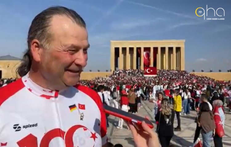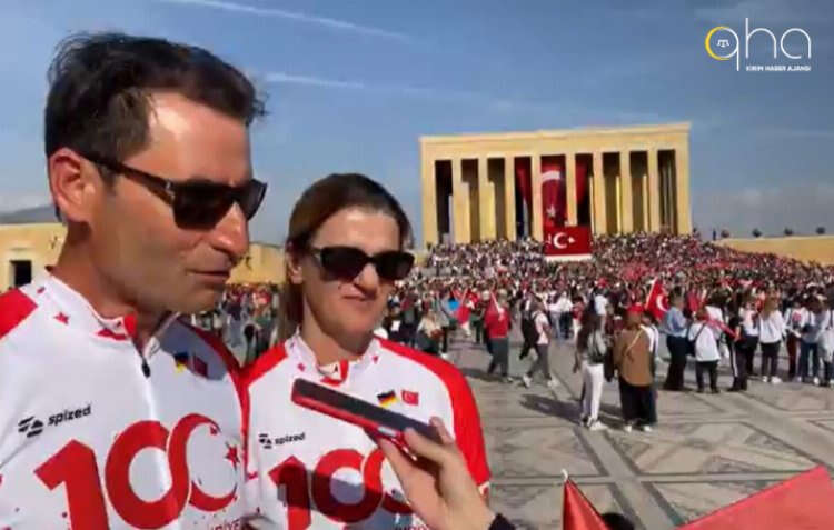 Almanya'nın Köln kentinden Türkiye Cumhuriyeti'nin 100. yılı için Anıtkabir'e gelen 10 kişilik Türk bisikletçi grubu, Kırım Haber Ajansının (QHA) sorularına yanıt verdi. Selanik'ten Ankara'ya bisikletleriyle gelen ekip, heyecan verici bir duygu içinde olduklarını belirtti.