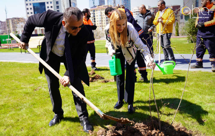 Ukrayna Büyükelçiliği, başkent Ankara'daki Ukrayna Parkı'na Kıyiv'den getirilen 30 fidanı dikti. Etkinliğe katılan Büyükelçi Vasıl Bodnar ve eşi Katerına Bodnar, diktikleri fidana can suyu verdi.