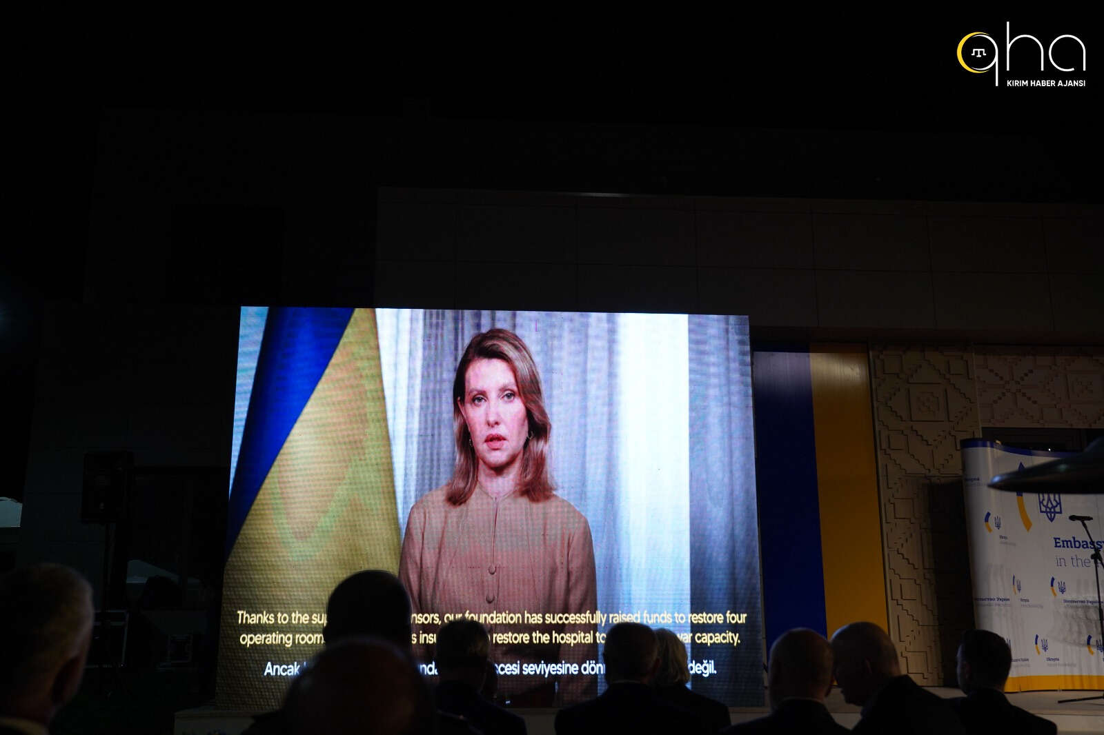 Etkinlikte, Ukrayna First Lady'si Olena Zelenska, İzüm'deki hastanenin yeniden inşası girişimini desteklemek üzere düzenlenen yardım etkinliğine ithafen video mesajı yayımladı. Olena Zelenska, etkinlikte hastane inşa girişimini desteklemek için düzenlenen yardım etkinliğine ilişkin şu ifadeleri kullandı: