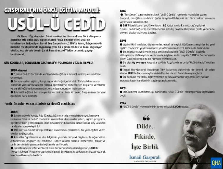Yani 1880'lerden 1900'lere geldiğimizde, bütün İdil-Ural bölgesinde ve genel olarak Türkistan'da 5000'den fazla Usul-ü Cedid okulu açılmış ve bu okullardan yetişmiş binlerce aydın var. Ben İsmail Gaspıralı ilgili belgesel yaptım, bunca seneden beri Türk dünyasıyla uğraşıyoruz ve onun için mücadele ediyoruz. Baktığımızda, eğer İsmail Gaspıralı ve o dönemin Usul-ü Cedid mektepleri, o dönemde ona eşlik eden Türk dünyasındaki cedidçilerin mücadeleleri, sonraki yıllarda Bolşeviklerin bu bölgelere tamamen hakim olana kadar bu aydınların çıkardıkları milli neşriyat olmasaydı, İdil-Ural dan Kırım'a, Azerbaycan'dan diğer bölgelere kadar bu milli neşriyat hareketleri olmasaydı, 1917'den sonra, 1920'lerden sonra bu topraklarda hakim olan 1991'e kadar Sovyet sistemi, bu halkların büyük bir çoğunluğunu asimile ederdi.
