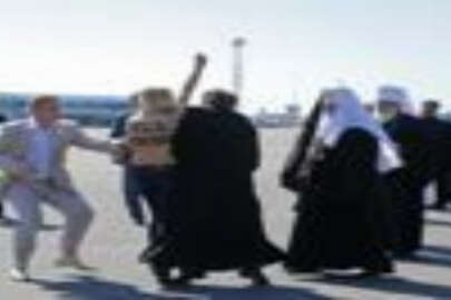 Kiev Knezliğinin vaftiz günü nedeniyle Ukrayna'ya gelen Moskova Patriği Kiril'e FEMEN grubu üyesi bir genç kadın saldırmaya çalıştı.
