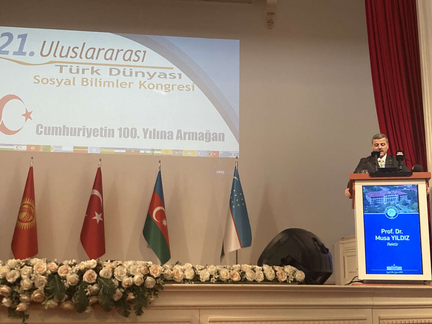 Açılış konuşmasını yapmak üzere 21. Uluslararası Türk Dünyası Sosyal Bilimler Kongresi Koordinatörü, Uluslararası Kuzey Makedonya Vizyon Üniversitesi Rektörü Prof. Dr. Ahmet Vecdi Can kürsüye davet edildi. Kuzey Makedonya’dan yeni geldiğini belirten Can, sözlerine “Balkanlardan, Rumeli’den, Evlad-ı Fatihan’dan size selam getirdim. Tüm Türk dünyasına selam olsun” diyerek başladı. Kırgızistan, Kazakistan, Özbekistan, Türkmenistan’a selam gönderen Prof. Dr. Can, “Kıbrıs Türk Devleti” vurgusu yaptı.